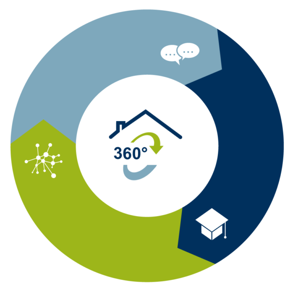 Unser Weg: Wir bieten aus einer Hand – im 360°-Radar – alle Tools für die Fortentwicklung von Wissen, Kompetenzen, Organisationen und Netzwerken.